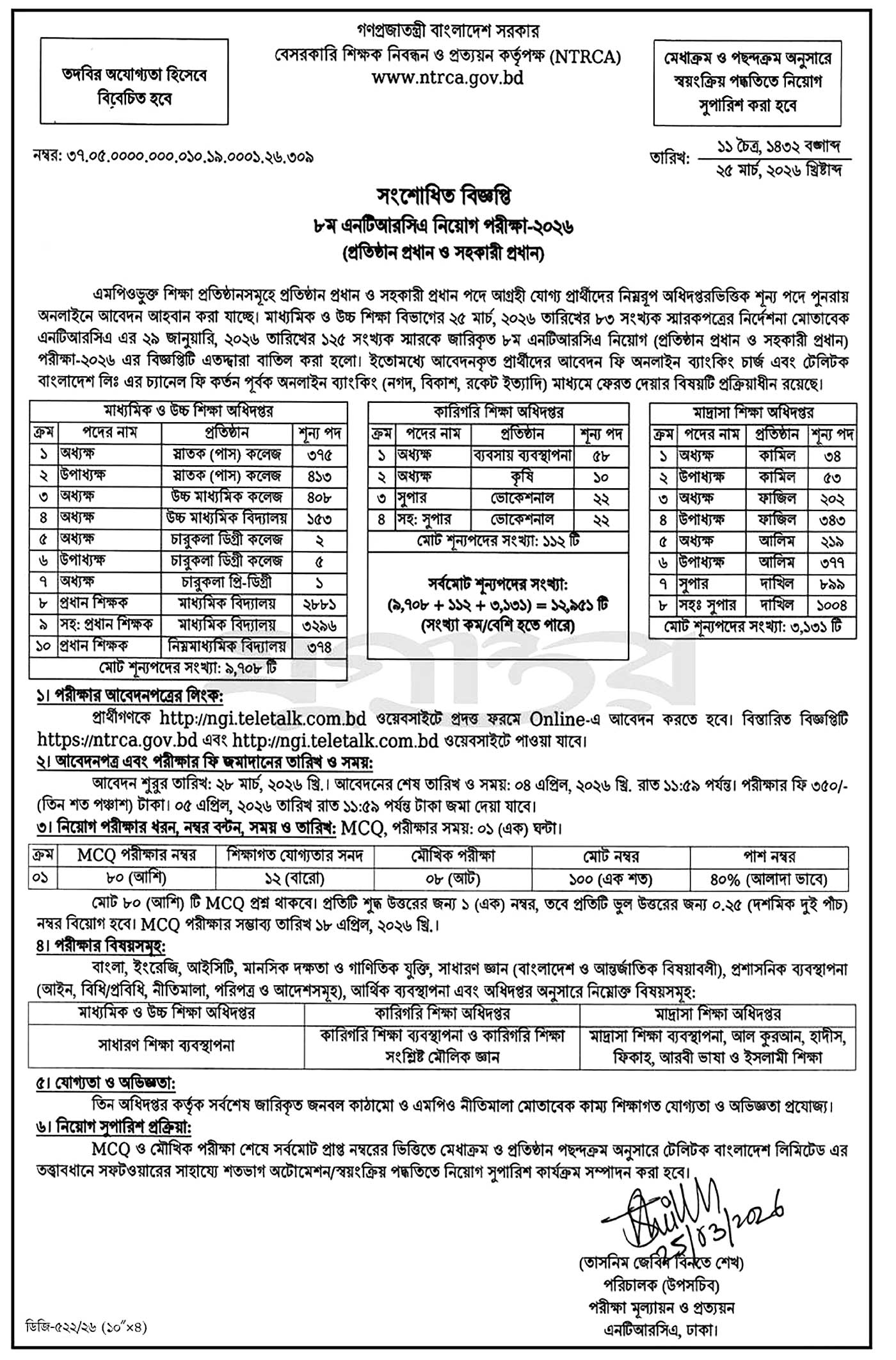 - আবেদনের পূর্বে ৮ম এনটিআরসিএ নিয়োগ বিজ্ঞপ্তি ২০২৬ ভালোভাবে পড়ুন